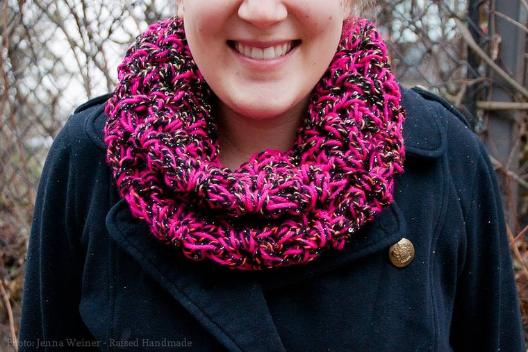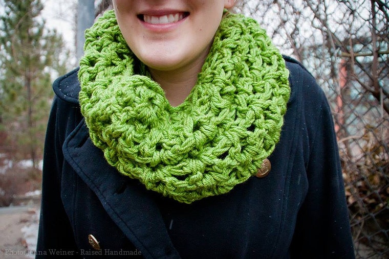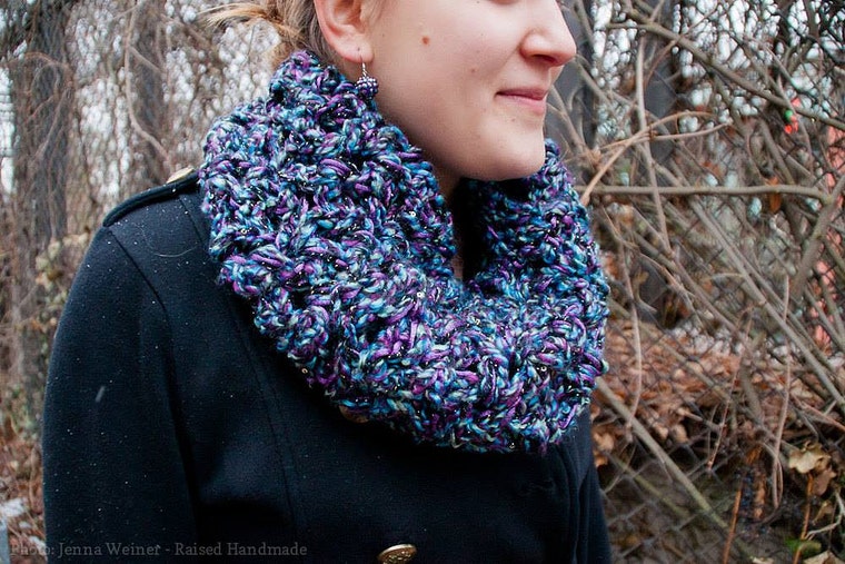 I like to accessorize cowls with handmade jewelry! -