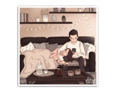 5 out of 5 starsSuch a pleasant and heartwarming art style! I got this because it looks a bit like me and my first cat that passed away. Thanks for the beautiful art! ❤️