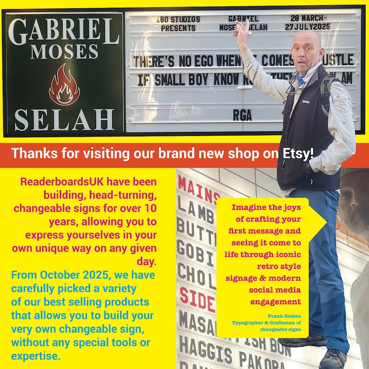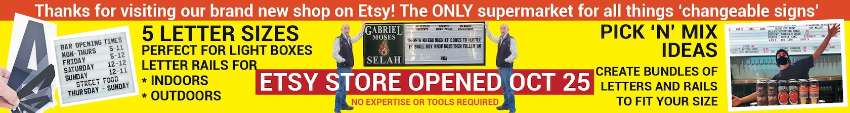 Readerboards have been making unique, changeable signs for over 10 years and are now on Etsy! Have fun & build your own American-style letter board with our easy-to-use letters & channels. Remember, we offer bespoke bundles and listings—please message us.