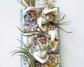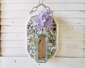 My mosaic designs are not usually planned or drawn out. I am often guided by an object that I want to incorporate into the mosaic. All of my mosaics incorporate vintage elements, such as old bottles, skeleton keys, distressed hooks, and chains. Most of the materials that I use to create my mosaics are recycled and repurposed.