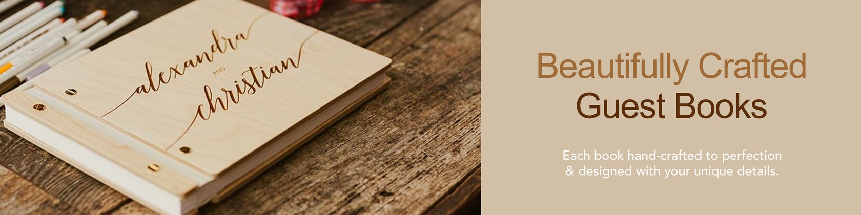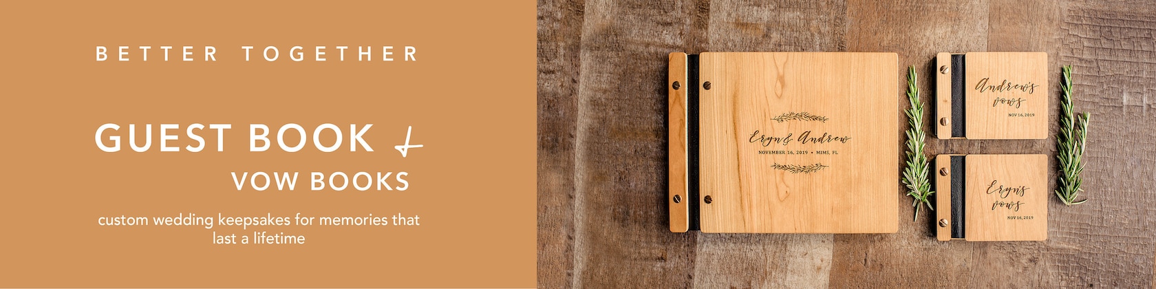 • Your order should include your book of choice as well as the "engrave my design" listing which you can find in the "Guest Book Upgrades" section of our shop.