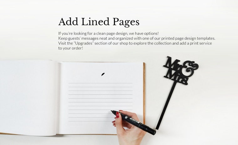 • To place your order, select the book of your choice & the "Engrave My Design" listing located in the "Guest Book Upgrades" section of our shop.