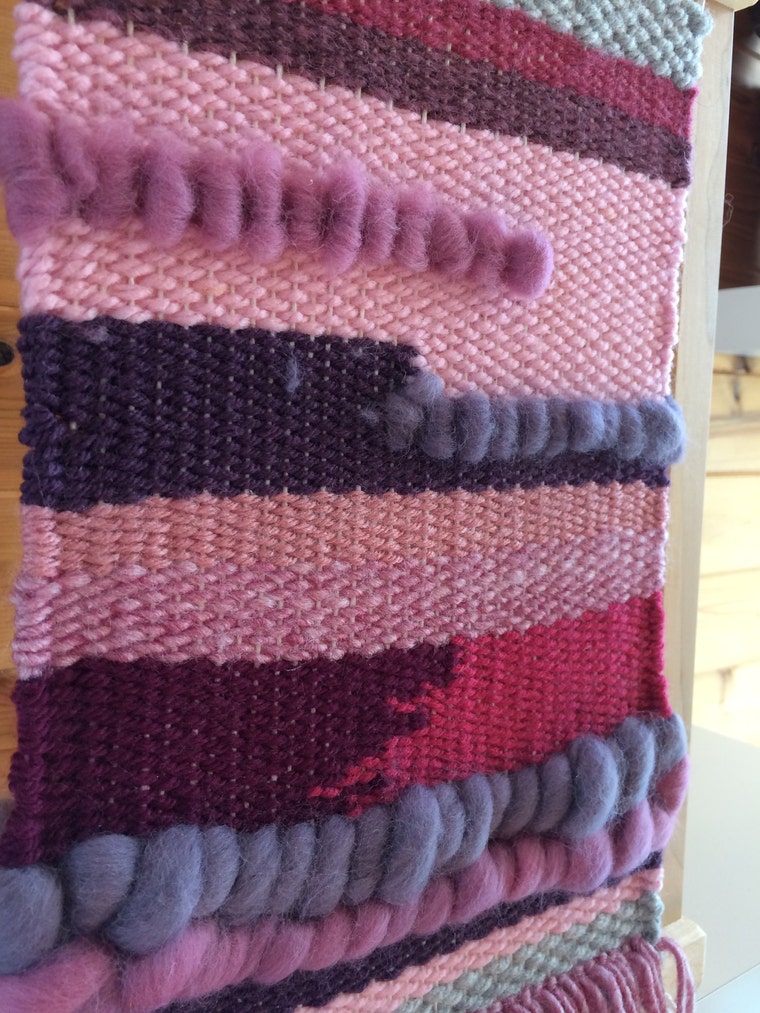 Woven Wall Hanging - modern version of woven wall hanging in purples and pinks for my twin daughters. -