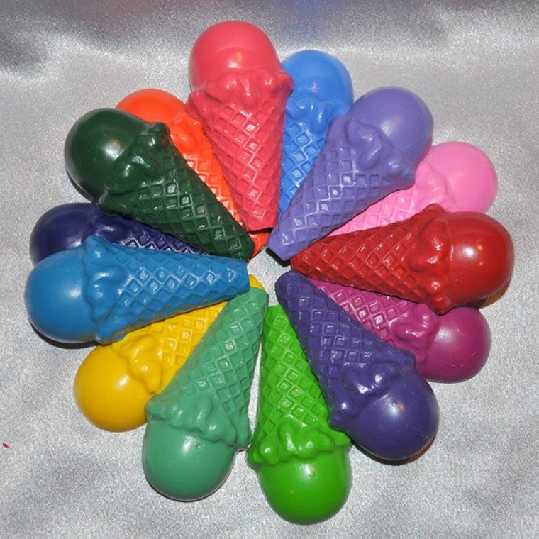 One day my son came home from kindergarten with his broken crayons and said his teacher told him to take the crayons home and bring a new box. We melted the crayons and made shaped crayons they were so cute my son told me I should sell them on Etsy.