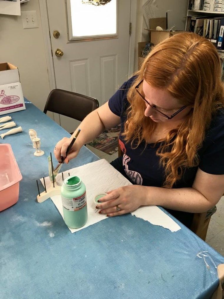 Glazing a reproduction half doll. -