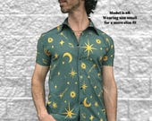 5 out of 5 starsThis shirt is very fun and just the colorful gift I was looking for. The fabric is much thinner than I was expecting and thus it wrinkles easily and can get be a bit static-y but it’s very cute and photogenic. If you are in a timeline order in advance! Because the item is handmade to size it takes some time for it to arrive. Very funky and cool shirt!