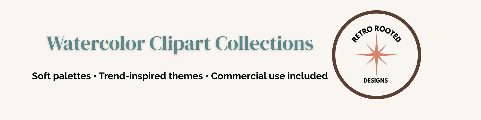 RetroRootedDesigns focuses exclusively on watercolor artwork — blending soft pastel palettes, earthy tones, and trend-inspired themes into versatile collections that work beautifully for: