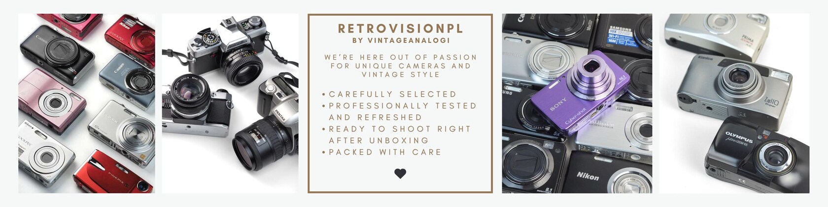 I’ve been in the retro camera world for a few years now, and during that time I’ve had the pleasure of serving thousands of happy customers in Poland. If you’ve found your way here, chances are you share my love for cameras and capturing moments. It’s that perfect mix of nostalgia and spontaneity that makes photography so irresistible. That’s why you’ll find not only analog cameras here, but also digicams and camcorders — everything you need to explore photography in your own way.
