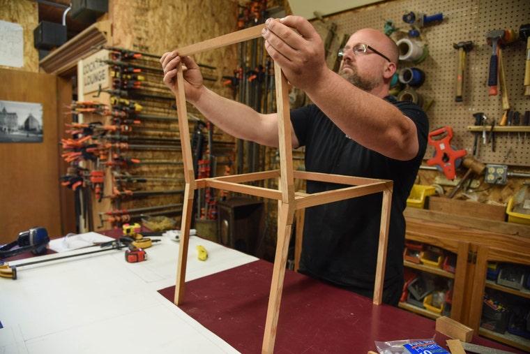 Each day at The RE Store provides a new supply of materials. We work with store staff to collect materials and goods that are best suited for a second life as hand-made furnishings. Our design team of Matt and David find inspiration from mid-century modern stylings and Queen Anne style architecture.