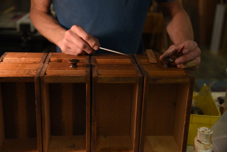 Most of the materials we use in our products are collected from our salvaged and used building materials warehouse at The RE Store. Some pieces, such as new hardware, are purchased at locally owned shops.