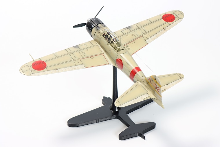 Mitsubishi A6M2 Zero silhouette stand with a 1/72 Airfix model. -
