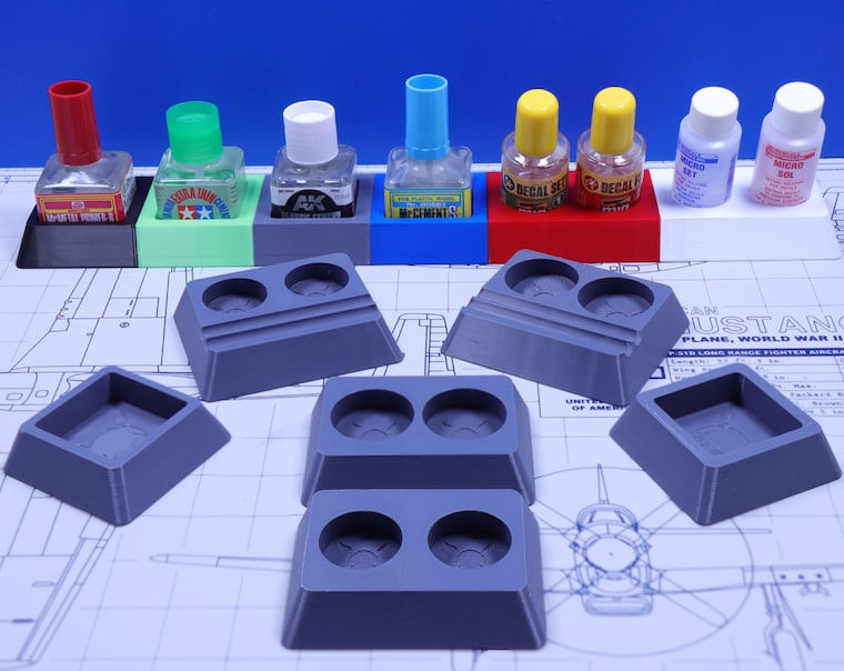 My current selection of glue and decal solution holders. Stand alone and modular.