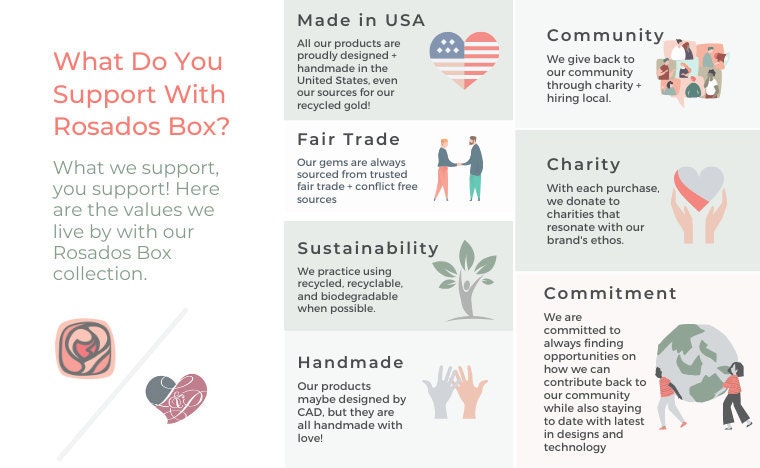 Every Rosados Box piece is made with care, intention, and a deep respect for ethical sourcing and heirloom-quality craftsmanship. And while Love & Promise also offers pieces from other talented artisans, we’re proud to say that every item we carry — whether made by our hands or thoughtfully sourced — comes from partners who share our values of fair trade, responsibility, and respect for both people and planet.