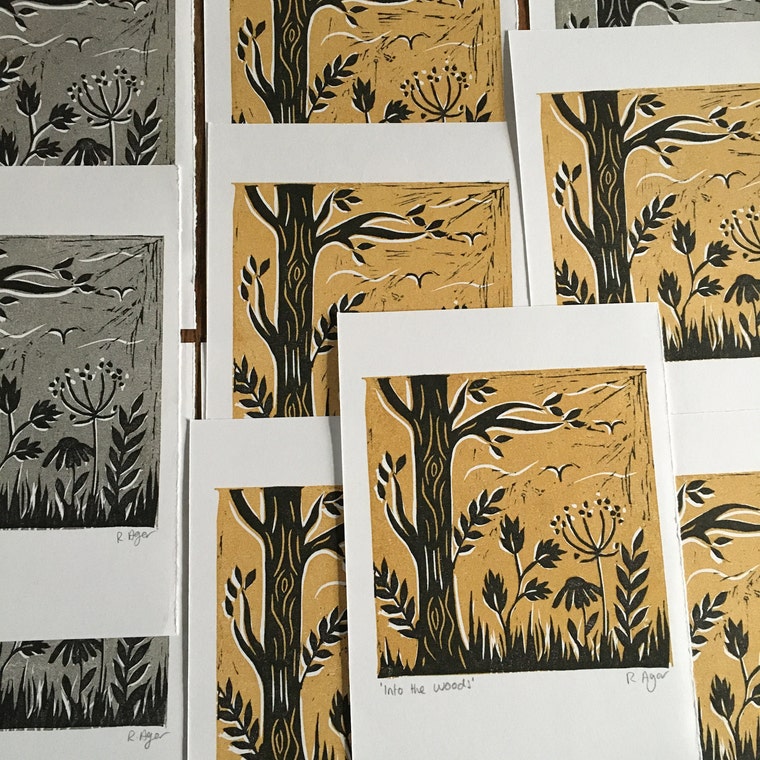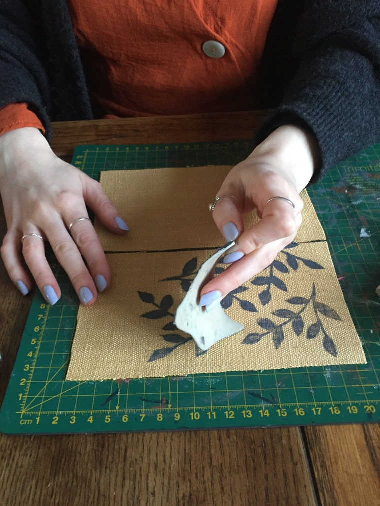 Hand printed fabric which I then sew into pouches & purses.