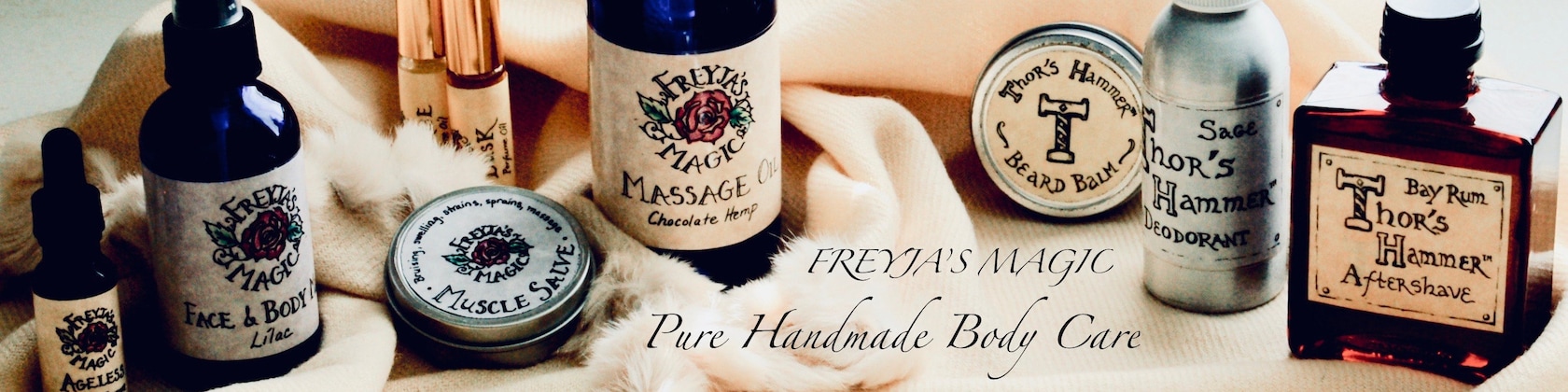 Freyja’s Magic features all-natural body care products for men, women and children formulated by a trained herbalist and aromatherapist. Everything is handcrafted in our home studio in Whitefish, MT. By using local, organic, and wild herbs and essential oils we strive to harness the healing magic of the beautiful nature that surrounds us. All our products are created to harmonize, rejuvenate and balance the yin/yang feminine/masculine energies of the body. No artificial colors, fragrances or preservatives - just pure Montana natural goodness for body, mind and spirit!