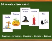 Since I have studied French and German before, I have created the cards for those languages as well, and then added Spanish as several people have asked for it. The translation cards are fun for adults as well as children, to make language learning into a game. My English-speaking partner has been learning Russian words along with my toddler, and my oldest is now learning French in addition to English and Russian.