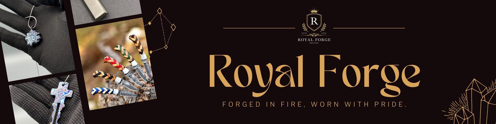 Hi, I’m the maker behind RoyalForgeDesigns! I craft unique Damascus & Titanium jewelry, pendants, rings, and more. Inspired by fire, history & color, I love creating one-of-a-kind pieces that tell a story. Fun fact: I collect rare coffees too!