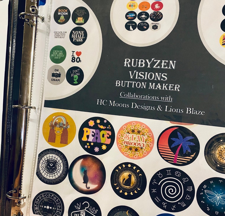 New catalog with available designs for ordering buttons. Email Rubyzenvisions@gmail for a copy! -