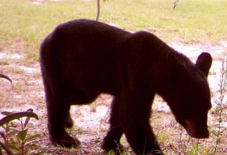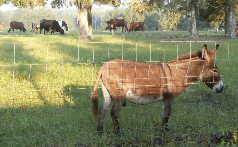 This is the view out of Benton's shop door. Visitors also include deer, bobcats, coyotes, and raccoons. -
