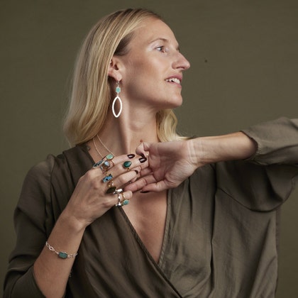 Las creaciones de joyería únicas de Tracy son el resultado de su obsesión por la moda de la gran ciudad y el entorno natural y rústico contrastante de su estudio ubicado en las colinas rurales del norte de California.