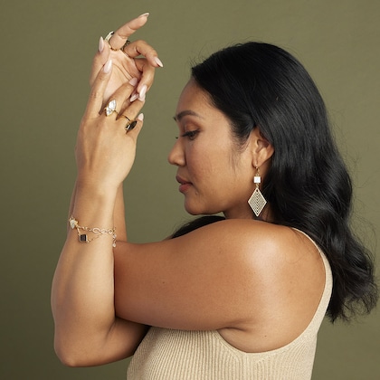 Tracy crea cada pieza de joyería a mano pensando en la versatilidad. Desde el profesional corporativo, pasando por la mamá ocupada, hasta el fashionista que se encuentra con las chicas para el brunch del domingo, hay una pieza diseñada para cada estilo de vida. Incluso ha encontrado un nicho en la industria nupcial.
