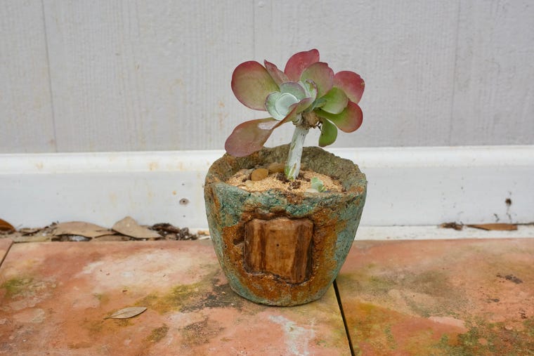 It wasn’t until my daughter and son were grown that I began exploring my interest in succulents. I was fascinated by the enormous variety of plants in various shapes, colors, textures and sizes. While mastering my propagation skills, I quickly ran out of planters; thus leading me to explore various methods of creating my own, resulting in what I now refer to as Rustic Pots.