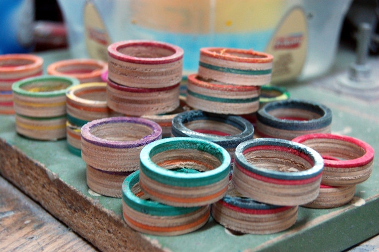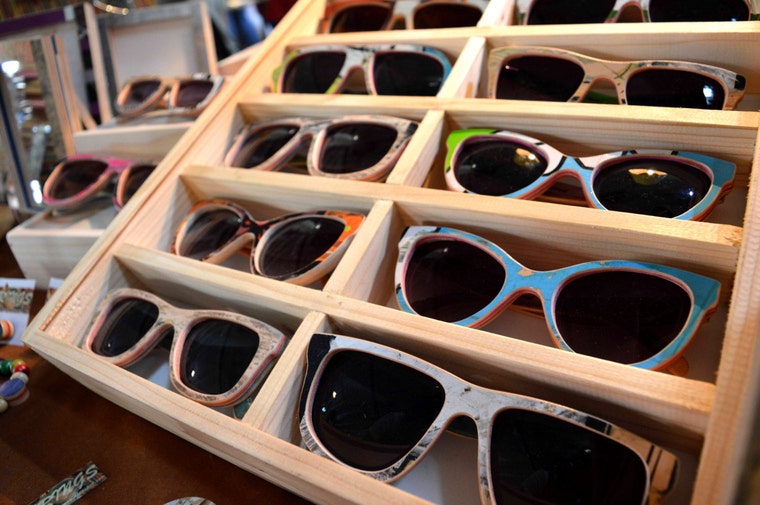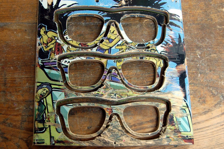 Recycled skateboard accessories, sunglasses and jewelry