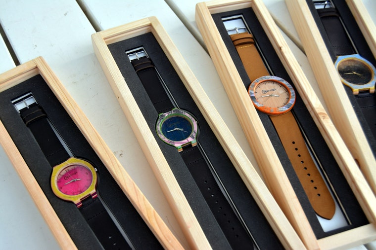 Recycled skateboard watches