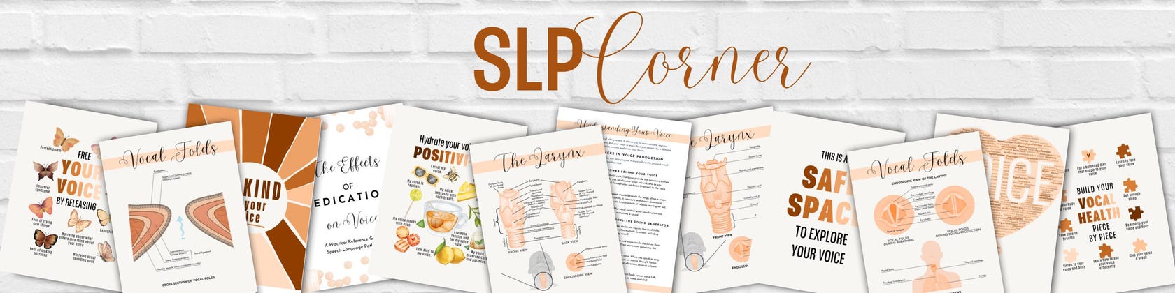 At SLP Corner, you’ll find educational handouts, client-friendly printables, therapy room decor, and other tools—all designed specifically for professionals working with people struggling with voice issues. Many of these materials fill a gap in the field, especially for those helping clients with vocal pain and tension. Every resource is based on real-world clinical experience, ensuring they are not only practical but also effective in therapy settings.