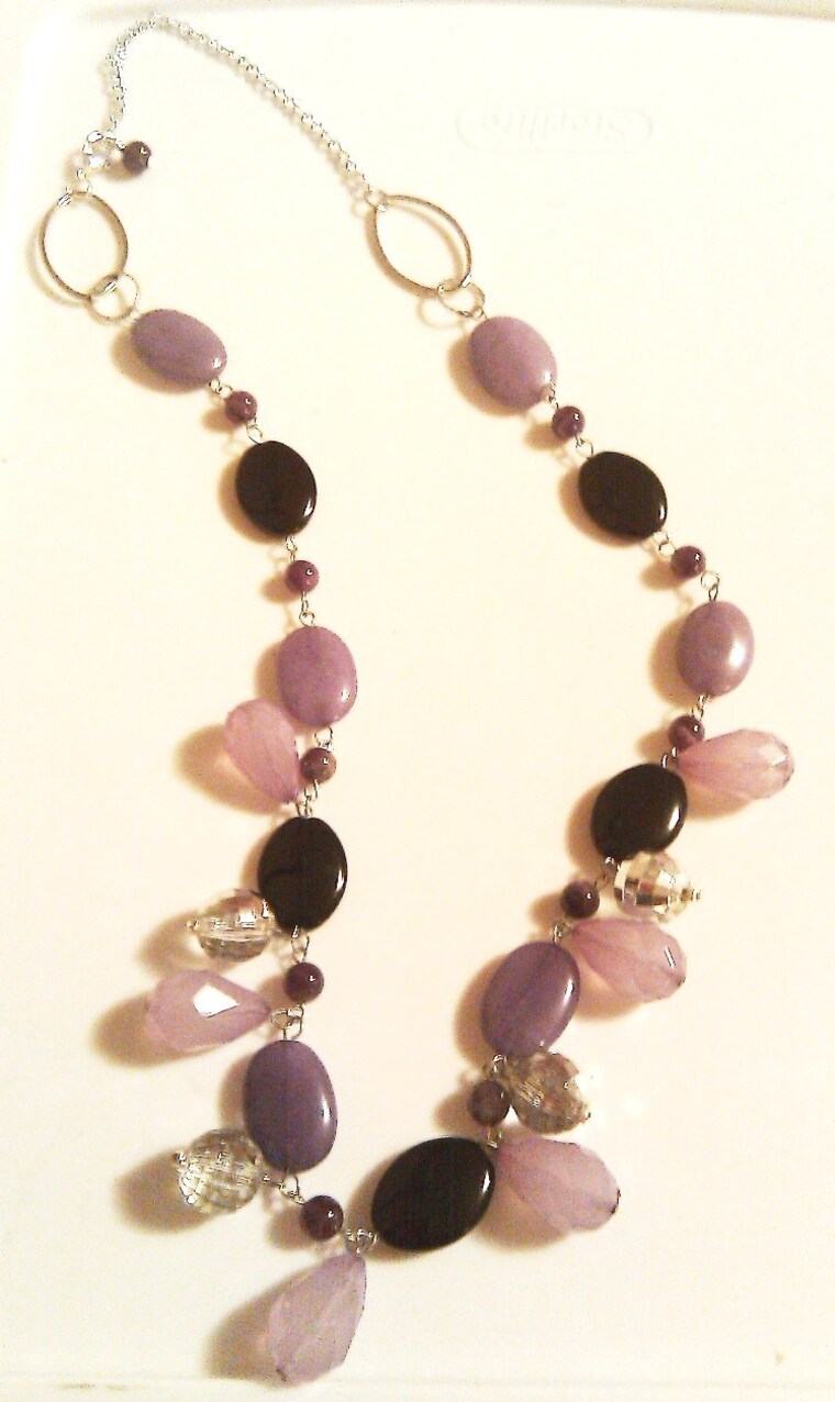 This necklace, featuring shades of purple with black, was a custom gift for a friends graduation.