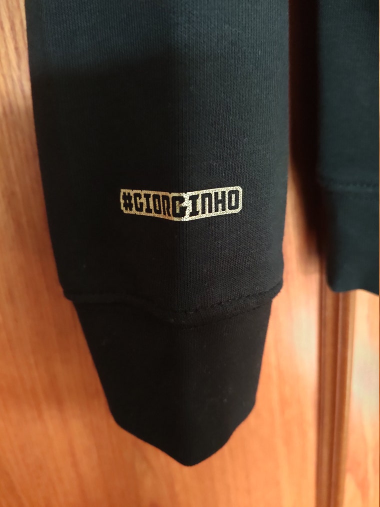 Experimentando con vinilo dorado sobre sudaderas. -