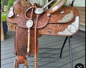 From beautifully tooled Western saddles to elegant English designs, each piece is carefully handcrafted using premium materials, ensuring long-lasting quality and performance. Whether you're preparing for the show ring, trail riding, or daily training, we have a saddle to match your needs and style.