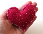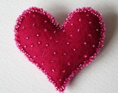 5 étoiles sur 5Une broche de cœur en feutre CHARMING dans la nuance la plus profonde de rose, soigneusement agrémentée d’une pincée de perles de graines et généreusement incrustée d’une bordure de perle de graines gratuite, finie au dos avec une goupille de fermoir en métal. Un bel accessoire artisanal pour votre col ou votre revers qui vous apportera des tonnes de compliments. J’ADORE LE MIEN!