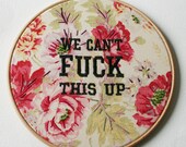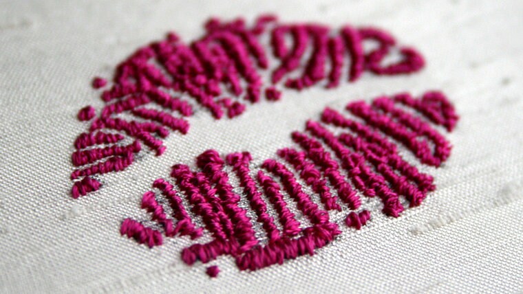 One of my signature embroideries, hand stitched lipstick traces. Sewn over my original drawing. -