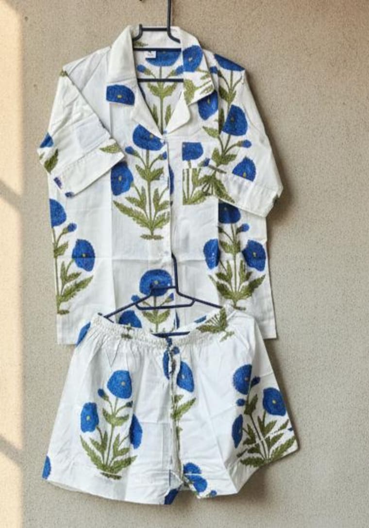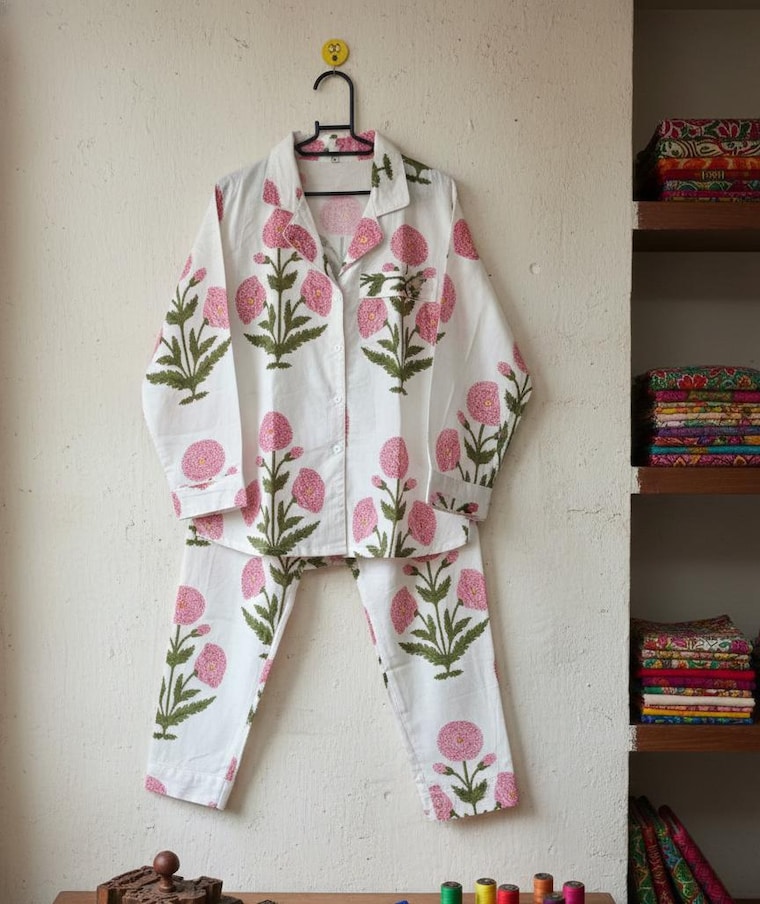 Hand block printed cotton night suit, handmade in Jaipur for soft, breathable comfort. -