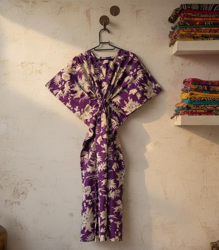 Hand block printed cotton kaftan, handmade in Jaipur for effortless comfort and timeless style. -