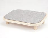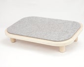 4 out of 5 starsThis is a really great foot rest. It's perfectly sized, comfortable on bare feet due to the felt, and has a really great angle for lower leg and foot health. It is beautifully made and looks great in my therapy office. One caveat: The feet are bare wood and this makes the foot rest slip on both solid surface floors and carpeting. The first time I used it, I shifted in my chair while my feet were resting on it and it shot out from under my feet and flew across the floor. My feet fell off it quite and I came down in the chair pretty hard. That could have caused an injury. I will put rubber caps over the peg feet, which will solve that problem. Had the foot rest come with rubber, non-slip feet to begin with, this would be a perfect, five star foot rest! Add the rubber feet and you will love it!