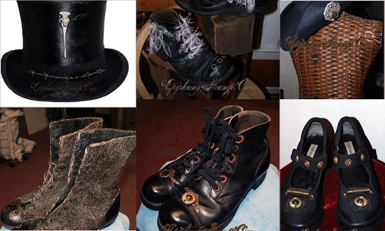 Shoes and hats that i've designed and created [Steampunk Apocalypse clothing line and Strangels clothing line] -