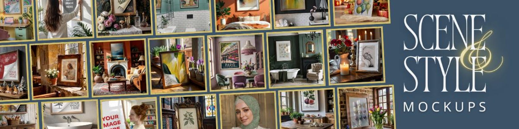 Styled, editable PSD wall art mockups designed to showcase your prints in cosy, curated interiors. All files include smart object layers and mount/no mount options.