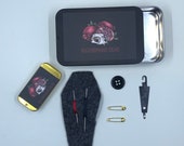Wizard Pins is a company that allows you to upload your artwork or logo and they will make it into enamel pins and various other items such as stickers or lanyards. This company is able to make the needle minders without my needing to Dremel the pin backing and attach the magnets myself.