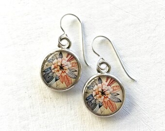 Silver Flower Earrings, Art Jewelry, Wearable Art Earrings, Zinnia Flower Colorful