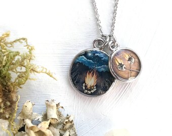 Around the Campfire Cluster necklace, Happy Camper, Fire Necklace, Camp Fire, Camping gift, Marshmallow, S'mores charm, Nature Lover Gift