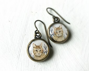 Painted Cat Earrings, cat mom jewelry, Orange color cat, pretty ginger kitty, orange cat