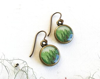 Forest print, Evergreen Tree, Bronze earring, Forest jewelry, Douglas fir, Pine forest