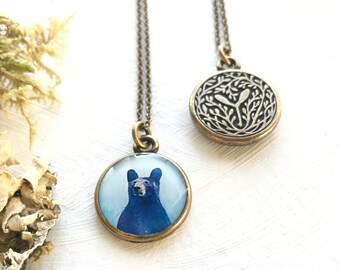 Handmade Bear Necklace, Black Bear Print, Bear Pendent, Black Bear Art, Bear Medicine, Totem Animal