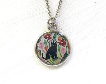 Cat Necklace, Black Cat, Cat Jewelry, Gift for Cat Lover, Little Black Cat