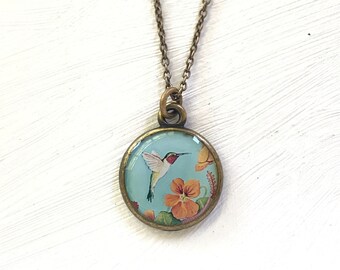 Hummingbird Jewelry, Handmade from Original Painting, Mothers Necklace, Mothers Jewelry, Gift for Mom, Hummingbird Art