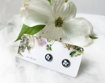 Black and White Earrings, Dogwood Flower Studs, Black & White Studs, Hypoallergenic 316L Stainless Steel and Resin Posts