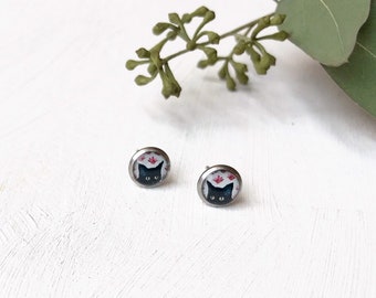 Black Cat Studs, Cat Stud Earrings, Kitty Posts, Cat Posts, Black Cat Earrings, Cat Lover, Gift for Cat Lover