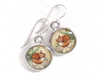 Woodland Animal, Red Fox Jewelry, Fox Earrings, Jewelry made from Original Art, Animal Earrings, Art Jewelry